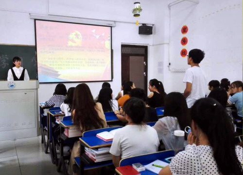 活动伊始,主持人首先以PPT的形式展示了习总书记知青岁月历经磨练,从普通农民到村支书,再一步一步稳扎稳打从田间地头锻炼成长走出来的艰苦过程。一帧帧幻灯片让同学们深刻体会到脚踏实地艰苦奋斗的意义,体会到在现今良好的环境中认真学习、学好自身本领的重要性。随后,主持人让同学们就幻灯片内容谈谈学习体会,同学们踊跃发言,纷纷表示要以习近平总书记为榜样,结合自身实际将党的优秀精神发扬光大。