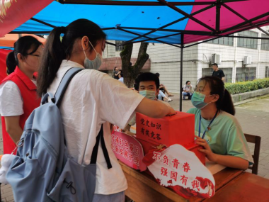 四史”宣传教育是新生入学的第一课,为实现新生前置化教育,BB贝博艾弗森官方网站在迎新报到处设置新生入学党史知识测试,学生党支部精心设计了200道题目。新生在办完分配宿舍手续后,需要抽取一道题目作答完成测试,答对者获得一枚定制的“战疫天使”钥匙扣,再去领宿舍钥匙。实现未入住先学习,未开学先上课,做到新生全覆盖,用青春方式传承红色基因,创新发展护理,受到了新生的一致欢迎。