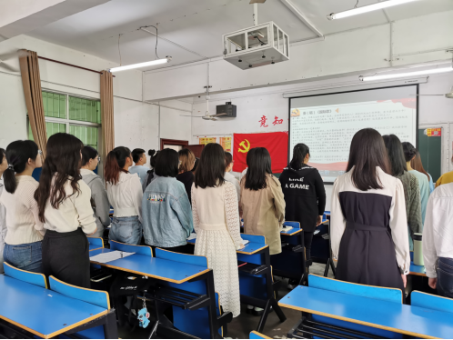 3月16日下午,BB贝博艾弗森官方网站学生党支部在思贤楼205教室为支部新发展的11名预备党员举行集体入党宣誓仪式。参加这次宣誓仪式的有BB贝博艾弗森官方网站学生科科长胥杜鹃、辅导员兼学生支部组织委员董婧同志,11名新党员、部分老党员。BB贝博艾弗森官方网站学生党支部书记徐海燕同志主持。