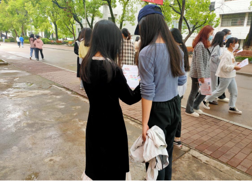 活动中,宣传志愿小分队通过到学校食堂门口、快递点附近、主干道两侧、宿舍楼下等人流量高的场所分发全民国家安全教育宣传单的方式,向过往的师生行人宣传和讲解公民应履行的维护国家安全义务、日常