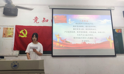 随后新党员杨雯翚同志代表全体新党员进行了发言:“我们要树立‘诚恳做人,踏实做事’的人生准则,以初心敬党心,以誓言敬理想,为共产主义的发展贡献自己的青春和热血。”