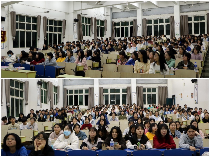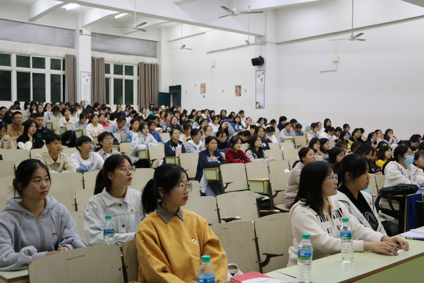 二百余位新生齐聚一堂聆听了宣讲会。此次宣讲会采取“讲+谈”模式,既讲“硬”要求,也谈“软”故事,以活泼的形式贴近新生,点燃新生心中的红色之火。学生党员曾玉珍就BB贝博艾弗森官方网站学生党支部概况做了介绍,郑馥芸讲解了入党流程,于若溪、谢媛媛、邓倩、刘梓滢等四人分享了入党心得。