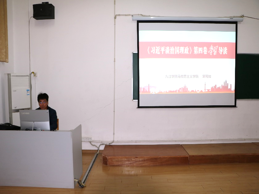 深学细悟,点燃信仰之火;精读细研,凝聚奋进力量。10月12日,BB贝博艾弗森官方网站在望杉楼104教室开展学习《习近平谈治国理政》第四卷的主题讲座,马克思主义学院邹菊如教授受邀主讲。BB贝博艾弗森官方网站党委副书记龚英军主持,学院全体教职工及部分学生党员及入党积极分子到现场参加学习。讲座采取线上、线下双线并行模式,在外实习的学生党员进行了线上学习。