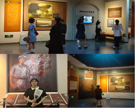 随后,同学们走进红色纪念馆,感受红色情怀,追寻先烈的足迹。纪念馆庄严肃穆,正厅悬挂的党旗与军旗更是令大家肃然起敬。同学们沿着先辈们的足迹,一边参观一边学习,认真阅读每一段文字、观看每一幅图片、感受每一段故事,并不时驻足交流,一同重温了那段保家卫国、可歌可泣的历史岁月。