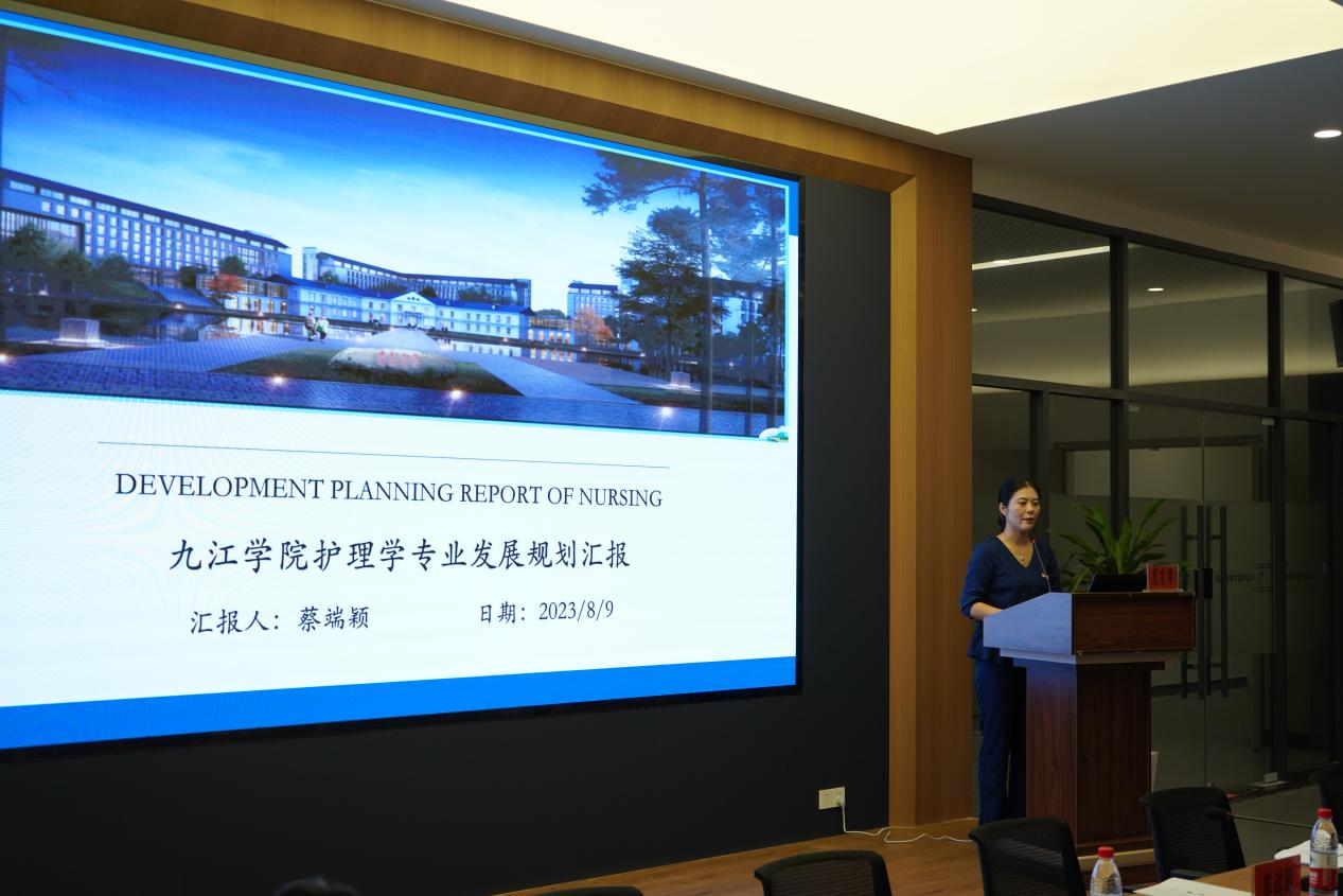 蔡端颖详细介绍了学校护理学专业建设情况,包括办学历程、师资队伍、教学条件、人才培养、特色与亮点、问题与不足、专业建设规划等。