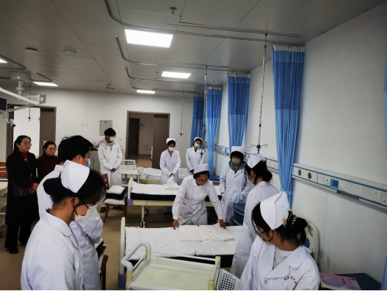 在铺床操作实验课观摩中,魏文娟护士长重点关注学生操作质量及操作效率。并与学院教师围绕“护理职业形象与着装规范”展开深度对话,学院教师坦言,部分学生在实验课中存在工作服穿戴随意、刘海遮挡视线等问题。魏文娟护士长建议将临床常见的“着装扣分细则”纳入实训考核标准,强化学生职业认同感,推动护理教育从技能培养向职业素养全面提升。