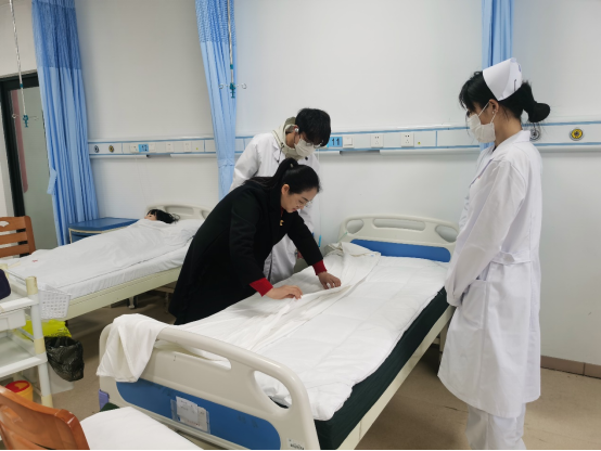 魏文娟护士长与学院教师以“铺床、无菌技术及穿脱隔离衣”三项基础护理操作为切入点,结合临床实际案例与教学标准展开对比分析。魏文娟护士长指出,临床场景中操作需兼顾患者个体差异与环境动态变化,如危重患者铺床时的体位保护、隔离衣穿脱的应急场景处理等,强调“以患者为中心”的灵活应变能力。