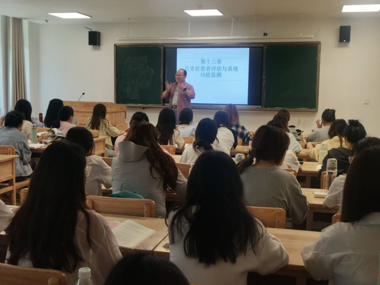 2025年4月18日,首场示范公开课在研究生楼131教室顺利举行。本次课程由内外科护理学教研室袁荣华老师主讲,授课主题为《危急重症患者评估与系统功能监测》。袁荣华老师以重症监护病房典型病例为切入点,聚焦血压监测这一核心指标,系统性地讲解了危急重症患者的血压管理策略。通过临床实时血压监测数据动态解析,深度诠释监测参数的临床价值,实现理论教学与临床实践的有机融合。袁老师的课程充分展现了护理专业课程的应用性,为急危重症护理教学提供了示范性案例。