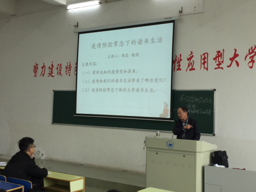 陈忠教授从“前所未有的新冠肺炎疫情突如其来”“疫情给我们的读书生活带来哪些变化?”“疫情防控常态化下新的大学生活”三个方面进行深入浅出地讲授。通过讲座学习,进一步增强了同学们的爱国情怀,懂得了了“学生”二字的含义,及“为什么要学习”和“为什么要读大学”等问题,使同学们懂得了“学的境界”和“生的涵义”,为同学们未来的大学学习生活指明方向,引导同学们培养正确的学习观。愿同学们能有更美好的学习生活,享受快乐的校园生活。