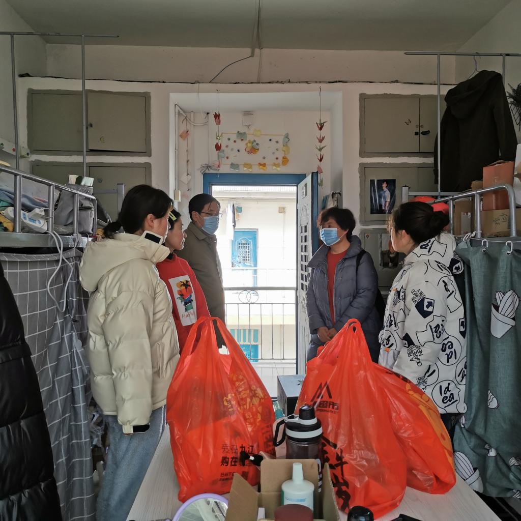 2021年2月9日,中华民族传统节日春节即将来临之际,BB贝博艾弗森官方网站党委书记梁光霞携党委委员王庆军、学生科副科长张钦、辅导员董婧看望慰问留校人员,代表BB贝博艾弗森官方网站向因居住地属疫情高风险地区不能归家的留校实习生及留守宿舍楼的宿管科宿舍管理员致以诚挚问候和新春祝福并送去年货。