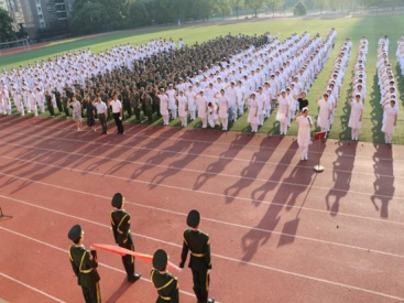 上午7时,升旗仪式正式开始。朝阳下闪耀着几抹动人的色彩:国旗红、国防绿、天使白。英姿飒爽的校团委国旗班,迈着铿锵有力的步伐,护送着国旗至升旗台。伴随着雄壮的《中华人民共和国国歌》,鲜艳的五星红旗迎着旭日冉冉升起,身着国防绿和天使白的学生方阵庄严肃立,向国旗行注目礼,伴着国歌齐声高唱,表达对祖国的热爱和崇敬,对和平的向往与坚守。