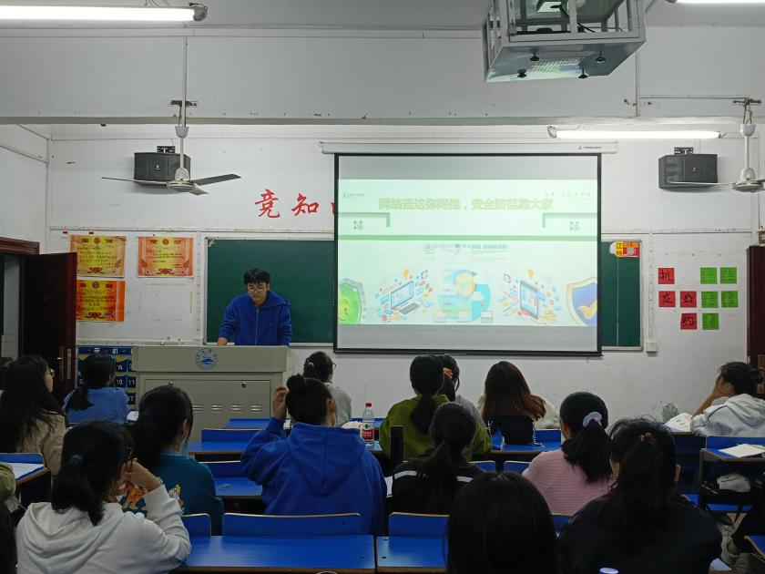 活动开始,由团支书简要介绍了关于网络安全教育方面的知识,然后通过具体的事例向同学们讲述了一些校园周边存在的网络安全隐患和网络安全常识,并以网络安全知识竞赛的方式进行了进一步的调查提问,同学们积极的回应。最后以播放视频的形式再次强调了网络安全教育的重要性,从而达到提高同学们安全防范的目的。