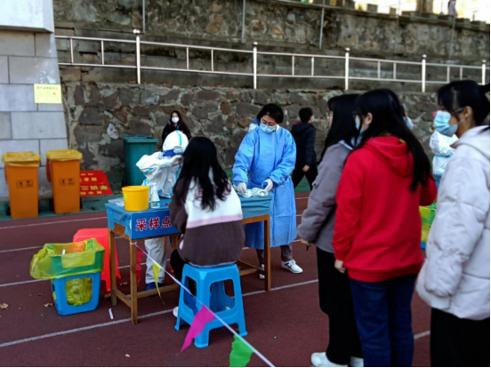 在此次活动中,志愿者们积极参与活动,他们以饱满的热情、贴心的服务、有序的安排促进了核酸检测工作的顺利开展。此次活动不仅加强了校园防疫管理还充分展现了志愿者们的服务奉献精神,为防疫贡献了一份力量。“病疫无情人有情,人间大爱暖人心。”让我们用行动向白衣天使和医务工作者的无私奉献致敬,众志成城,抗击疫情,中国加油!