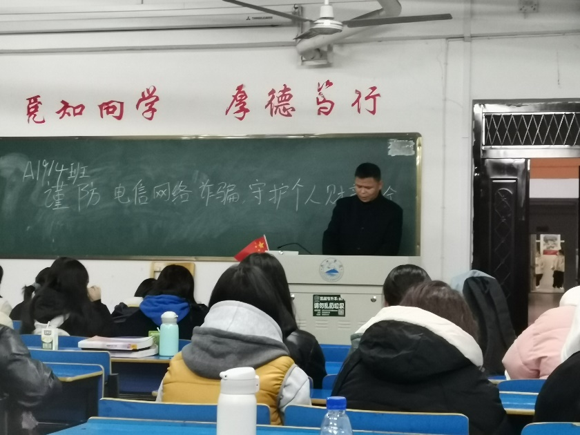 班会活动中主讲人带领我们观看预防电信诈骗的相关视频,视频生动地讲解了QQ冒充好友、微信发布虚假爱心传递、虚构车祸、贷款、金融交易等48种常见诈骗手法,提醒大家不要轻信陌生来电、好友突如其来的借钱,保护好个人身份及银行卡信息,遇到情况要主动打电话问当事人,降低受骗风险。最后,主讲人以个人身边与PPT相结合的案例,揭穿骗子常用的诈骗手段,提出了有针对性的应对防范措施。告诫同学们遇事要沉着冷静,不要贪图小利;关系再好,只要沾上借钱的事,都必有蹊跷。万一在日常生活中如果发现上当受骗时,要及时报警并采取紧急处置方式,将损失降到最低。