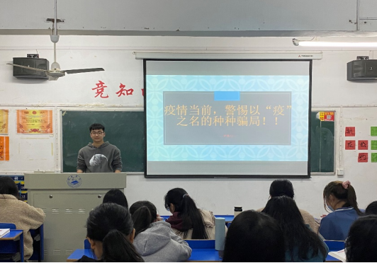 此次主题班会,同学们了解到从疫情期间"两高"公布的典型案例来看,诈骗犯罪呈现出诈骗虚构内容类型化、诈骗手段网络化和被害群体普遍化等特点。因此,充分的预防措施能对预防网络诈骗起到关键作用。面对以疫情为名义的诈骗手段,同学们应当巩固自身心理防线、利用互联网查询信息真伪、加强对身边朋友的宣传,为社会安全贡献出自己的一份力量。