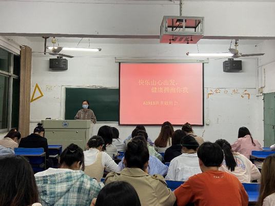 为进一步提高大学生的心理素质,促进大学生的身心健康 58日晚,BB贝博艾弗森官方网站于思贤楼举行了以“快乐由心出发,健康拥抱你我”为主题的主题班会。本次活动由团支书组织召开。