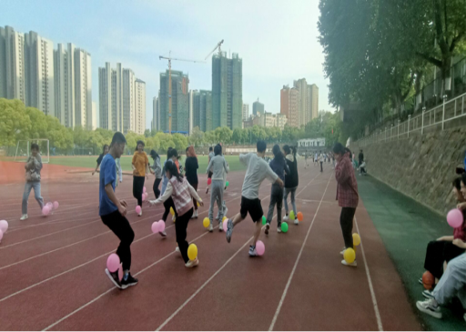 清脆的声音点燃了操场的热情,同学们正在进行激烈的“踩气球”比拼。随着裁判员一声令下,同学们迅速行动,气球的爆炸声、同学们的欢呼声、观众们的掌声汇聚在一起,成了一首振奋的乐章,点燃了大家的激情。