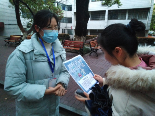 春夏季是传染病的高发时期,此次健康宣教活动采取发传单+“面对面”讲解的形式,20位志愿者在校园主干道旁向同学们分发宣传单并进行重点讲解,进一步提高学校师生健康观念和预防意识,积极倡导科学合理健康的生活方式。同龄人的解说让大家感到亲切,轻松的形式也有助于同学们更好地记忆预防甲流的要点。