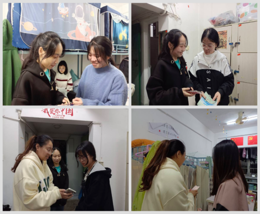 学生科老师带领学生干部们认真负责,分工明确,高效地核查了各班各寝室人数,确认了22级转专业同学的搬离情况,排查了是否有晚归、夜不归寝现象,及时联系未归寝同学,通知室友提供请假记录以便核查,遇到异常情况及时上报。同学们态度友好,积极配合检查,与班干友好交流,工作推进十分顺利。查寝结束后,及时统计校对检查结果,为学生安全筑牢了一道坚实的防护线。