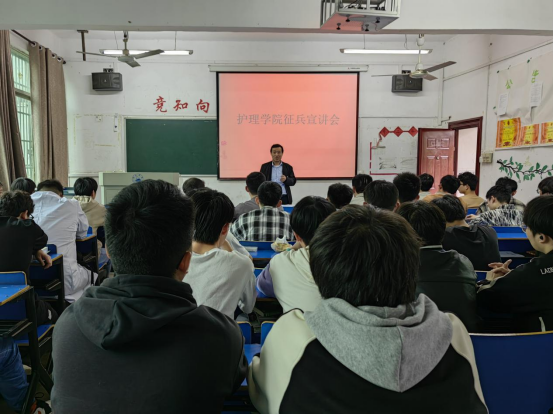 为营造浓厚的征兵工作氛围,激发同学们投身国防建设、报效祖国的参军热情,4月13日,BB贝博艾弗森官方网站于思贤楼207组织开展征兵宣讲活动,BB贝博艾弗森官方网站党委书记郭青为全体男生上了一堂生动而有意义的国防教育课,加强同学们对部队的认识,鼓励同学们投身军营。