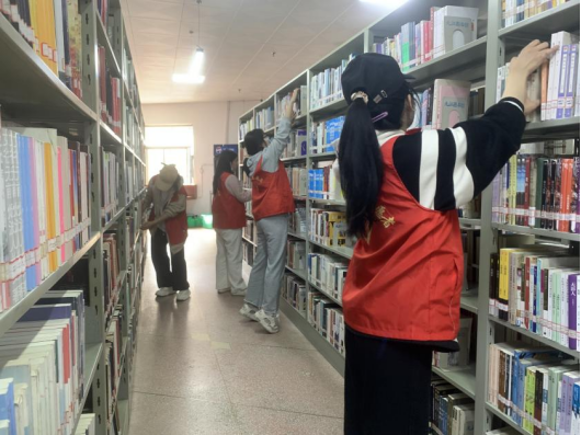 留下书香,带走灰尘。青年志愿者们在学校整队集合,一同前往九江市图书馆进行图书整理志愿活动。活动开始前,图书管理员向志愿者们讲述活动中的服务内容与注意事项。紧接着,由工作人员分别带领志愿者们到相应楼层进行工作。在活动中,志愿者们充满干劲,用自己的实际行动展现志愿服务的积极热情。在青年志愿者们的齐心协力下,整个图书阅览室变得整洁干净。参加志愿活动的同学们表示:“我们在整理图书的过程中学到了一些图书管理方面的知识,综合素质也得到了提高。看着变得整齐一致的书籍,我们所有的付出和辛苦都是值得的。”