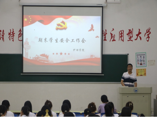为做好考试安全月和期末安全工作,6月11日,BB贝博艾弗森官方网站在华阶一召开期末学生安全工作会议,党委副书记龚英军、学生科科长胥杜鹃、团委学生会和各班班干干部共同参加。