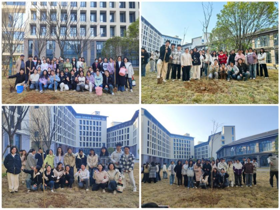 龚英军首先致辞,希望同学们以石美玉先生的精神为指引,在临床实习中践行“救死扶伤、无私奉献”的医学精神,并和同学们一起加入植树队伍,鼓励大家铆足劲,撸起袖子加油干,让小树苗扎稳根、喝饱水。随后,同学们分组协作,挥锹挖坑、扶苗培土、提水浇灌,亲手种下了象征希望与生命的树苗。完成树苗的栽种,大家合影留念,记录难忘时刻。