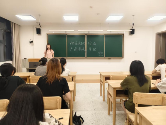 为进一步弘扬重信践诺的传统美德,构建诚信自律、诚信考试的良好风气,强化学生诚信意识,营造公平、公正、诚实、守信的考试环境,6月15日晚,BB贝博艾弗森官方网站于紫薇园教学楼开展“规范考试行为,严肃考风考纪”主题班会。
