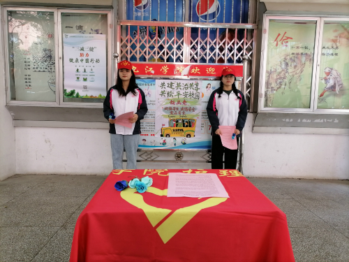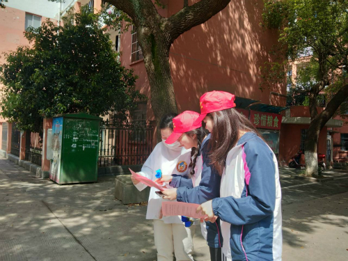 上午10点30分,志愿者们统一穿好校服,佩戴好工作帽在欧风园集合。明确分配工作后,志愿者们放置好宣传所需桌子、张贴好宣传海报并领取宣传单及花朵展开宣传。他们在校门口附近、食堂门口、三里街等人流量较多的地方礼貌地向校内外人员详细介绍网络安全、消防安全和食品安全三方面的知识。校内外人员都认真地听着志愿者的讲解,接下宣传单或用手机将传单上罗列的各种建议及注意事项拍下,给广大亲朋好友一个友情提示。志愿者将手里的花朵及传单分发完后在欧风园集合,随后党支部成员与志愿者们在“共建共治共享,共绘平安校园新画卷”横幅下进行合影。