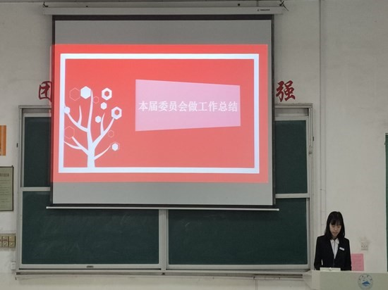 大会在国歌声中开始,同学们表情庄重。随后,本届委员会成员陈梦盈做出工作总结。陈梦盈对本届委员会工作顺利提出肯定,强调脚踏实地、有创新、能团结才会营造出良好的学生会氛围,同时也希望未来的学生干部能够携手共进,团结起学生会,努力工作、努力学习。