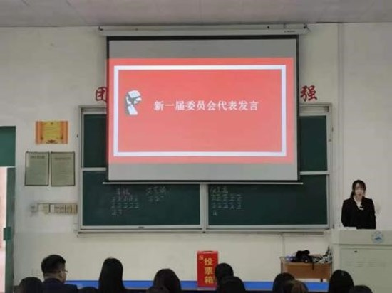 大会推选出新一届的委员会,新的主席团成员通过公正公开的选举得出结果:张芙嘉为学生会执行主席、李悦为团委副书记。随后由张芙嘉同学代表新一届委员会发言,其强调新一届成员会继续维持积极温馨团结人性化的工作氛围,勇敢面对机遇与挑战,更加团结创新的全心全意为同学服务,在工作时努力拼搏,在学习时努力获取知识并在最后祝同学们学业有成。大会最后宣读新一届学生会负责人名单。
