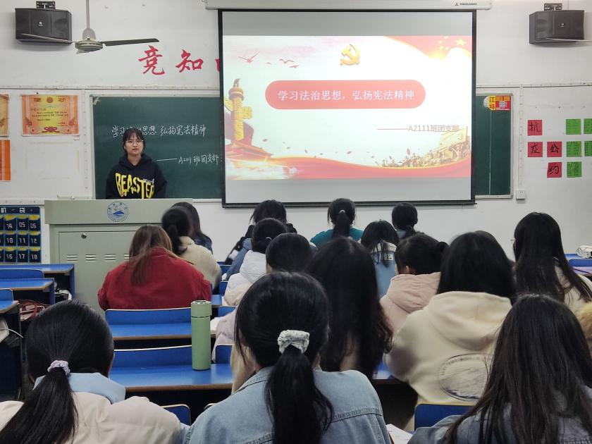 为深入学习法治思想,大力弘扬宪法精神,培养全体学生的法律意识,12月1日,BB贝博艾弗森官方网站组织开展了“学习法治思想,弘扬宪法精神”主题团日活动。
