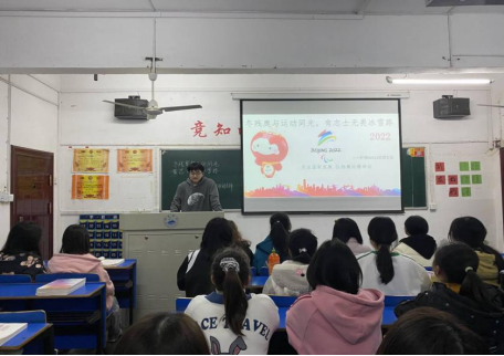 活动中,主讲人结合PPT及音频、视频等多媒体形式从残奥会的来历、运动员励志奋斗路、赛场外的奉献展开描述。残奥精神体现“平等、参与、共享”的社会目标。各班主讲人通过带领大家观看残奥会的感动瞬间,聆听残奥会主题曲等方式,展现残奥会“理解、尊重、关心、帮助”的精神,在场同学无不深受感触。