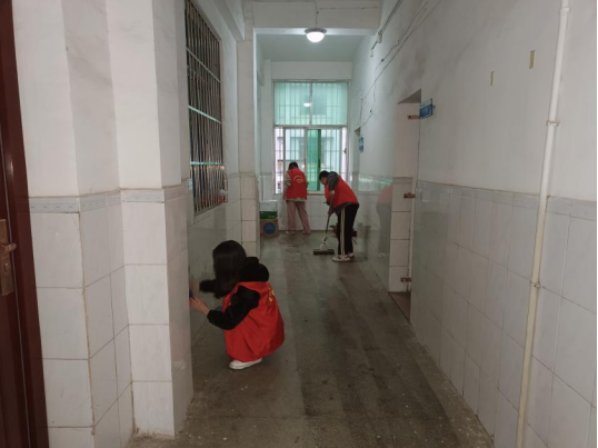 活动前,负责人招募志愿者,并与志愿者确定活动时间、地点及内容。同时,准备好抹布,拖把等清洁工具。活动中,志愿者们先于思贤楼集合,统一前往打扫区域。志愿者按照安排分成三组,前往所负责区域展开行动。一组负责走廊卫生,认真的做着擦窗户、扫地、倒垃圾等清洁工作;一组则负责办公室门口区域,志愿者辛勤擦拭镜子,卖力拖地;一组负责擦拭花盆,并摆放好位置。活动最后,志愿者整理好使用过的工具,将工具摆放至原来的位置。志愿者们进行合影留念,共同记录下这一难忘的时刻。