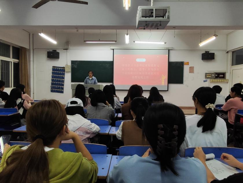 活动中,主讲人周钟韵通过视频带领同学们聆听学习习近平总书记对宣传教育的重要发言,对“如何做好新时代新征程宣传思想文化、担负起新的文化使命”提出明确要求。在深学细悟中,护理 A2311班学生代表陈宜宣上台发言,围绕“如何学习习近平总书记宣传思想文化工作指示”提出自身心得体会,积极动员学生干部创新工作方法和形式,适应新时代的需求,以热情饱满的态度去服务同学,传达重要信息。在场人员积极响应,表示做好宣传工作是学生干部义不容辞的责任。