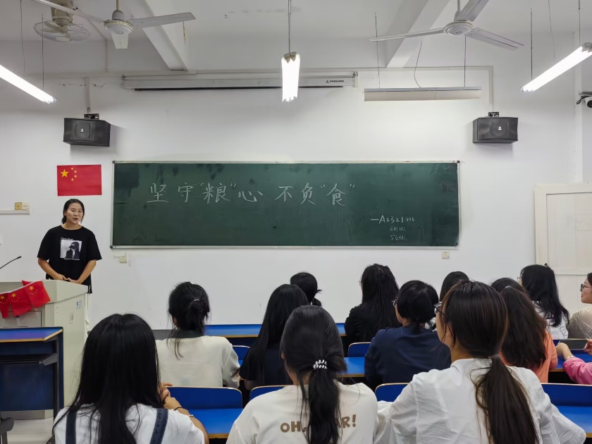 会上,主讲人准备充分,向同学们普及了“世界粮食日”的来历及相关知识,号召大家在日常生活中贯彻光盘行动,养成良好的生活习惯,增加社会责任感。同时,重点强调了“一粥一饭当思来之不易,半丝半缕恒念物力维艰”的节约意识,提出大学生作为未来社会的中坚力量,应深知节约环保的重要性。在主讲人的引导下,同学们积极响应,集思广益,提出了许多节约粮食的方法,力求节约粮食的行为在校园内走深走实。