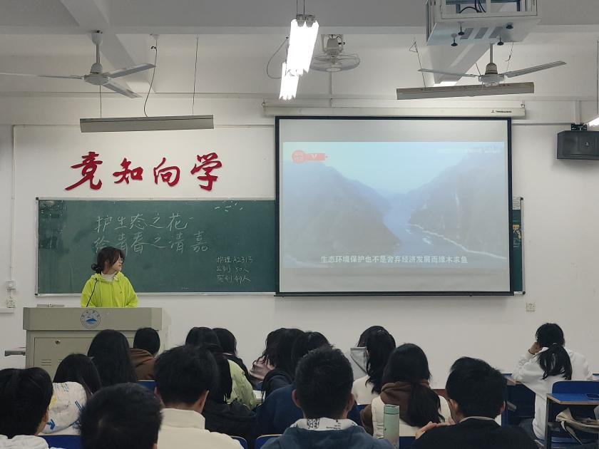 活动上,主持人为同学们放映了关于生态环境保护的宣传视频,讲述了垃圾生产的数量之大,危害深重,提出保护环境是每个人义不容辞的责任,我们都应该树立强烈的环保意识。生动地讲述,给在场同学留下了深刻印象。同学们纷纷表示此次团日活动受益匪浅,将以“勿以善小而不为,勿以恶小而为之”积极心态面对,为维护山清水秀的美好生态环境付出不懈努力!