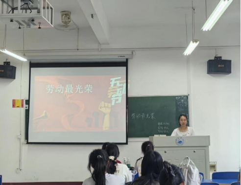 会上,各班的主讲人强调了劳动的必要性及光荣性,对劳动精神进行了高度概括和生动诠释,为同学们弘扬劳动精神指明了方向。同时结合PPT向大家讲述了一个个劳动模范的故事,倡导同学们学习劳动模范身上的优良品质在日常生活中积极进行劳动实践同学们备受鼓舞表示会在劳动奉献中绽青春风采。