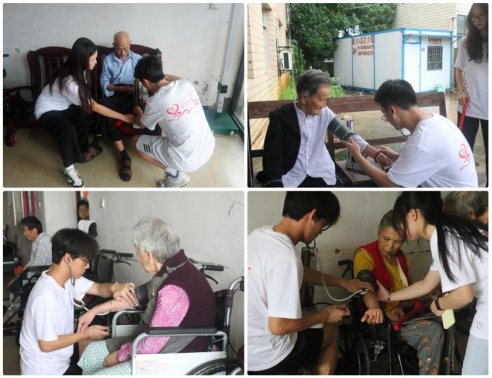 小小血压计,满满关怀情。“红细胞”小队利用专业的护理知识,进行义诊活动。“红细胞”们耐心为老人进行血压的测量,了解健康情况,对是否患有高血压、是否服用药物等相关问题进行一对一的健康宣教。提醒血压较高的老人注意饮食,少油少盐,保持良好的作息,提高老年人对高血压的认识,科普健康知识。老人对义诊的活动效果给予肯定,引发在场的“红细胞”在老年护理领域寻找更加适合乡村老人的护理服务的思考,在医养一体的大背景下,规范服务,提高护理质量。
