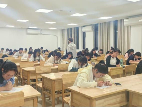活动筹备阶段,学生会学习部精心策划,力求为同学们打造优质的赛事体验。比赛共设笔试与飞花令两个环节。笔试环节中,同学们全神贯注、奋笔疾书,充分展现自身文学才华。经过严谨批改,八位同学凭借扎实的知识储备成功晋级飞花令环节。飞花令要求参赛选手从“春”“月”“夜”中选取字词进行诗词比拼。现场气氛热烈,选手们你来我往,展现出深厚诗词功底。“春山多胜事,赏玩夜忘归”“春江花朝秋月夜,往往取酒还独倾”等优美诗句脱口而出,赢得现场观众阵阵掌声。