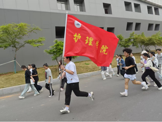 校园跑活动为体育文化月拉开序幕。A2411 班的黄祖锟同学高举院旗,步伐矫健地奔跑在队伍前列。同学们身姿挺拔、目光坚定,他们整齐的脚步声如同激昂的青春鼓点,浩浩荡荡地向前迈进,彰显出BB贝博艾弗森官方网站昂扬向上的精神风貌。