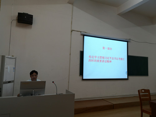 为进一步巩固全体党员的党性修养,不忘初心,牢记使命,永远铭记作为党员的责任义务,5月29日下午,BB贝博艾弗森官方网站教职工党员、学生党支部全体党员及发展对象在望杉楼104教室参加了党课学习。党课由梁光霞书记主讲,内容为认真学习贯彻习近平总书记视察江西时的重要讲话精神和刘奇书记在全省领导干部会议上的讲话精神。