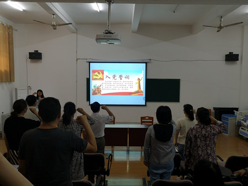 党课结束后,由组织员刘梦玲老师带领大家重温入党誓词,希望大家牢记入党之初的誓言,永葆政治本色。