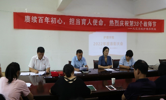 会上,院长蔡端颖做了讲话,向全院教职工致以节日的祝贺和美好的祝福。她表示现场老师们的发言充分反映了BB贝博艾弗森官方网站实干笃行向未来的精气神,学院的新变化新发展靠的是全体师生的共同努力,靠的是“人人关心学院发展、人人对学院未来负责”的主人翁意识,未来更要坚持以“抓铁有痕、踏石留印”的精神,优化理论教学方式,改革实验教学模式,深化校企合作、校院合作,走出一条符合国家需求的,适应九江地方经济社会发展需要的,体现BB贝博艾弗森官方网站办学特色的应用型专业教育道路。她希望全院教职员工以受表彰的教师们为榜样,牢记总书记的殷殷嘱托,深耕学术、匠心育人,更好担起学生健康成长指导者和引路人的责任,做社会的尊者、心怀国之大者、立德树人的能者,在服务健康中国2030战略中开启学院迈向国内一流护理学科的新征程。