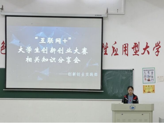 会上,创新创业实践部负责人向同学们讲述了"互联网+"大赛的历史,就互联网大赛的参赛类型和流程展开了叙述,讲解了相应的格式和要求。随后大赛优秀获奖人郑馥芸、邓倩分别分享了自己的参赛经验,强调了优秀参赛作品需具备创新性和可行性,表达了认真态度的重要性。会上同学们聚精会神,认真聆听,积极记录知识要点。