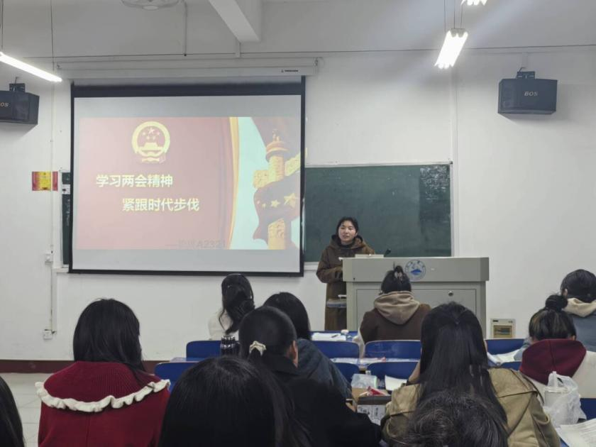 共研两会精神,关注国家大事。会上,主讲人循序渐进,大家一起学习了两会期间习近平总书记重要讲话精神,政府工作报告的主要内容特别是关于教育的工作部署,全国人大常委会、全国政协常委会工作报告和“两高”报告关于教育的内容。同学们会上热情高涨,讨论激烈,纷纷表示将趁势而上、顽强奋斗,把两会精神落到实处。