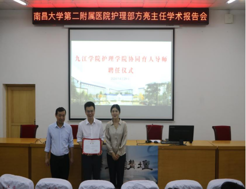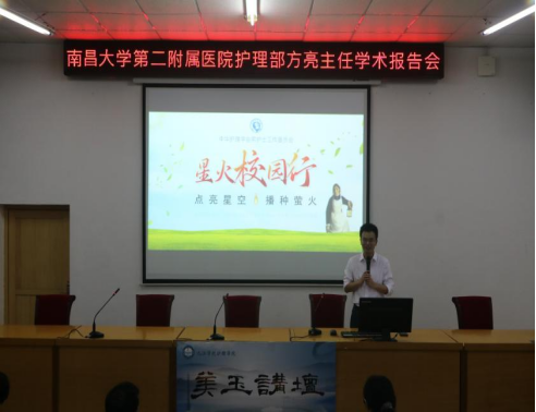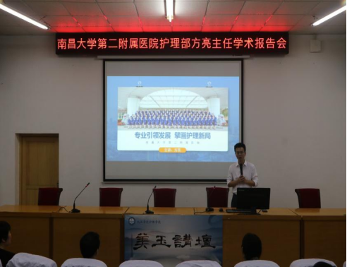 报告会期间,方亮展示南昌大学第二附属医院的医资力量,为同学们介绍了当代护理人先进榜样激励同学们发愤图强,勇攀新的高峰。