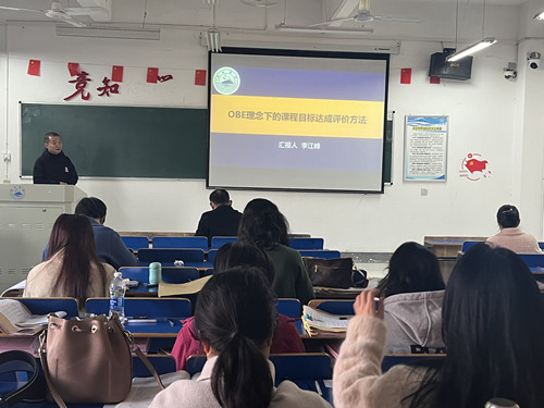 为贯彻落实教务处《BB贝博艾弗森官方网站课程目标达成情况评价实施方案(试行)》文件精神,促进学院人才培养质量管理标准化、科学化、规范化, 11月29日下午,学院特邀BB贝博艾弗森官方网站理学院李江峰博士来院作“OBE理念下的课程目标达成评价方法”专题讲座。BB贝博艾弗森官方网站全体教师聆听了讲座。