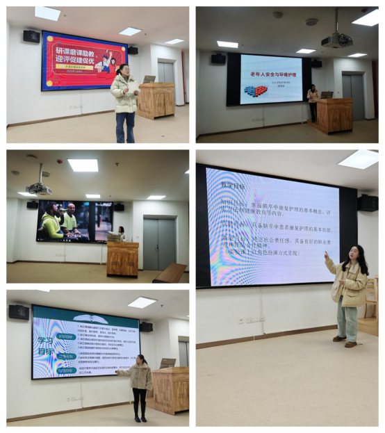 护理学基础教研室刘秀秀、廖晓春、李妍、康玉斌老师分别以课堂授课的形式讲授了《护理学基础》《老年护理》《康复护理》《社区护理》在下学期的内容。各位老师从课堂知识导入、重点难点内容呈现、课程思政案例穿插、课堂节奏把控以及信息化技术手段的应用等方面逐一打磨研讨,进一步优化教学设计和完善教学环节。