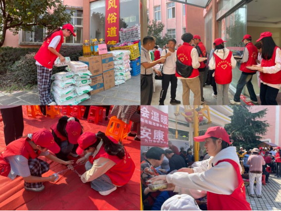 10 月 11 日,“红细胞”们早早来到福利中心,协助九江市红十字会和中心工作人员筹备庆典活动。他们耐心且细心地搀扶老人入座,为老人递上一杯杯热茶,在现场忙碌不停。敬老院里到处都是志愿者们的身影,他们怀着热忱为老人们送去温暖关怀。老人们脸上洋溢着喜悦的笑容,庆典在阵阵掌声中圆满结束。表演过后,“红细胞”们还帮助工作人员为老人准备并发放丰盛午餐。一位老人感动地说:“感谢孩子们的陪伴,让我在这个重阳节感受到家的温暖。”